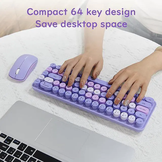 Nice appearance, small sizeThe compact 68-key design can be easily held by women with one hand, small and portable, and realizes various functions through the combination of Fn and Shift keys. The candy-colored round keycaps look great, it's a gifts for girls and children.
