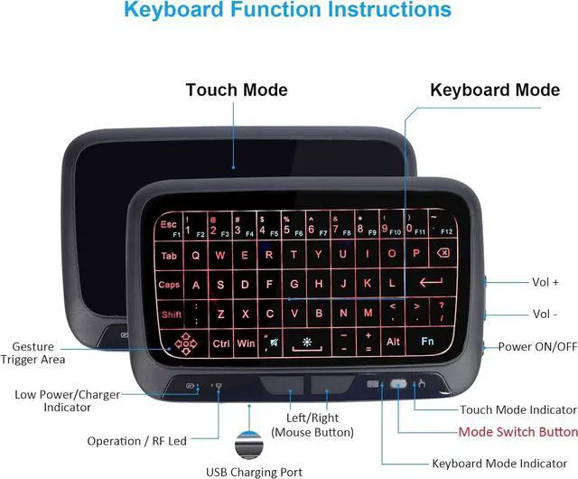 Two ModesThe full panel touchpad, it has two operating modes, keyboard mode and touch mode. You only need to press the mode switch button to switch at will