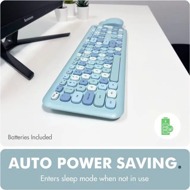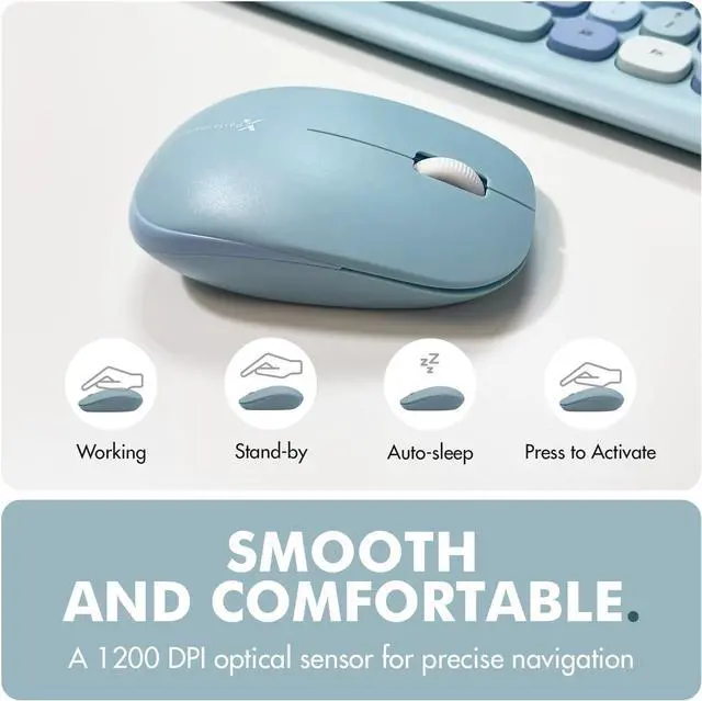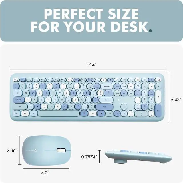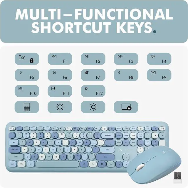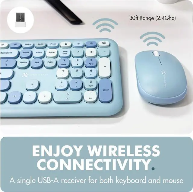 Simple Plug and Play: Begin typing on the cute keyboard and mouse combo instantly. Just plug in the USB dongle. Batteries are included for the pastel keyboard cute and blue mouse.