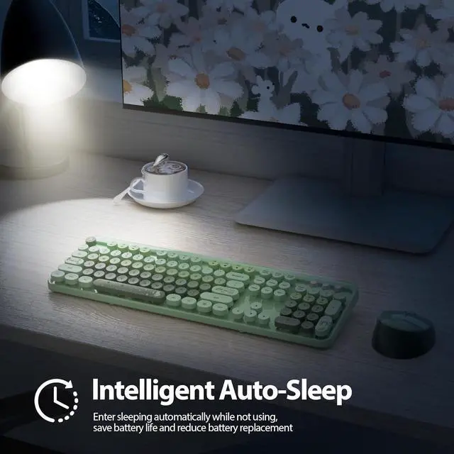 Cute Keyboard with Detachable Round Keycaps: Featuring a cute and retro design, this typewriter wireless keyboard and mouse combo adds a touch of charm to your workspace. The round keycaps give it a unique and vintage look, making it not only functional but also aesthetically pleasing.