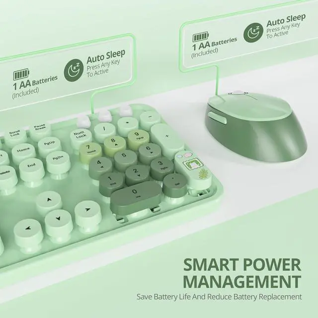 Auto Sleep and Long Battery Life - This Green Wireless Keyboard Mouse features Auto Sleep Mode, automatically conserving energy after 5-8 minutes of inactivity. With its long battery life, you can enjoy extended use without frequent recharging or battery replacements.