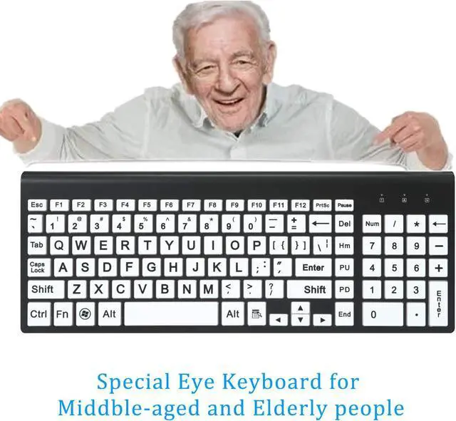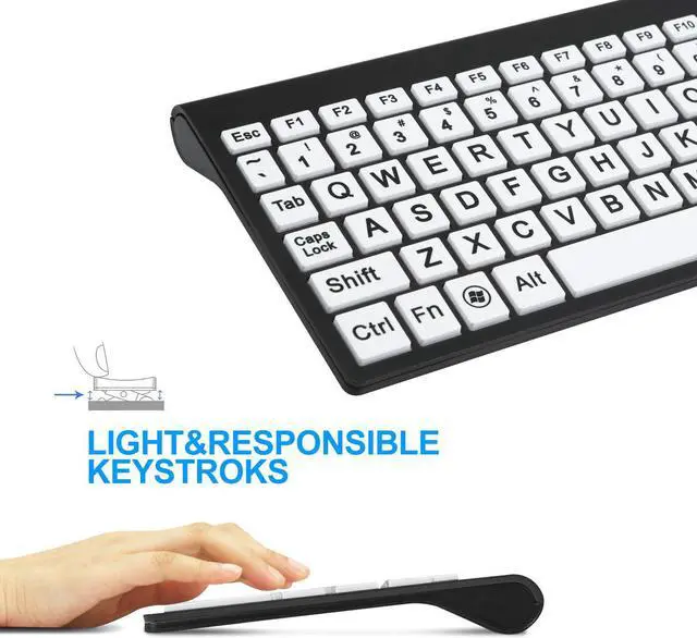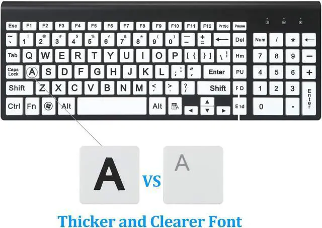 LARGE PRINT KEYBOARD WITH HIGH CONTRAST KEYS - Easy to see in low light, designed for those with visual impairments or learning to type.