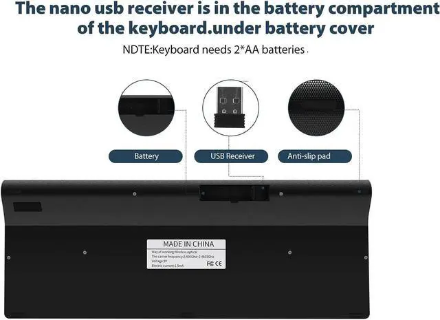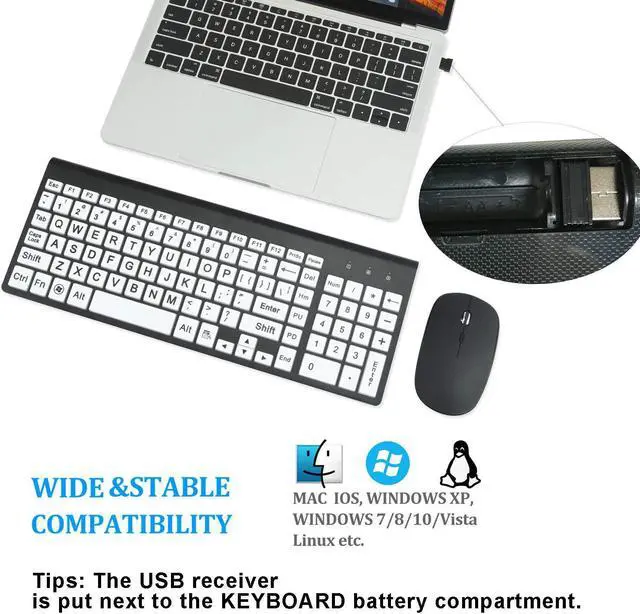 CONVINIENT 2.4G WIRELESS CONNECTION - No special software required. Compatible with Windows 98,Vista,7,8,10 and higher as well as Mac OS, Google Chromebook etc.Note:The keyboard and mouse share a usb receiverThe usb receiver is put next to the battery compartment of keyboard.Note: If the mouse moves slowly or does not work, please re-plug the receiver or replace the battery.