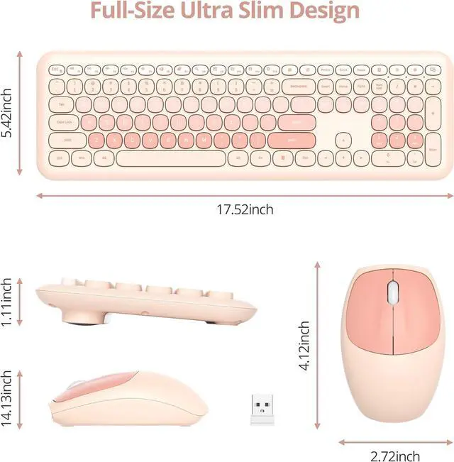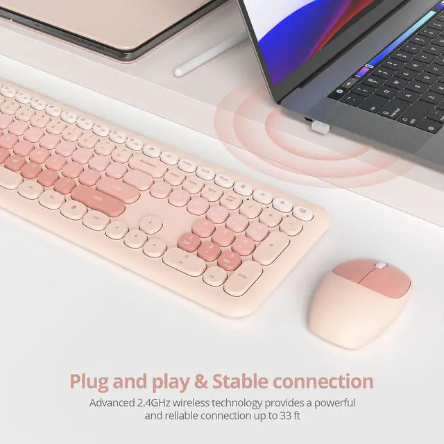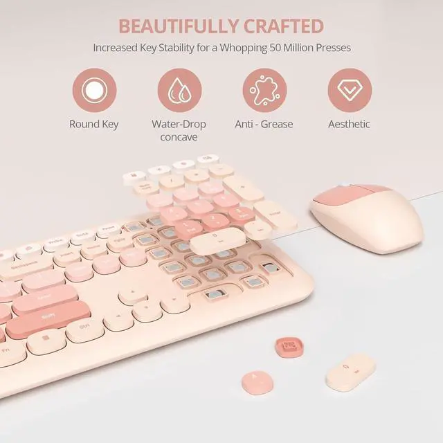 Cute Color and Chocolate key: The sweet and lovely color mixing brings you visual enjoyment and adds a touch of colorful fun to your life. The rounded keycaps design is more suitable for wrist typing height, while the buttons are silent, light, and fast, making this a great cute keyboard and mouse wireless combo