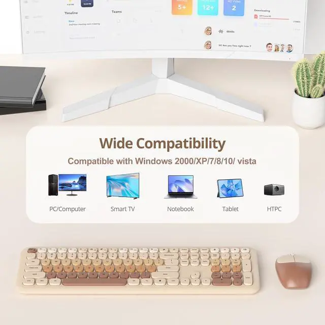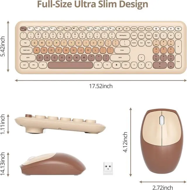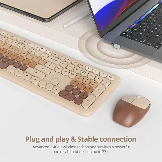 Easy to Use & Plug and Play: This creamy keyboard and mouse wireless operates on a stable 2.4GHz wireless connection with a range of up to 35-foot. The plug-and-play setup ensures seamless connectivity with Windows PCs and laptops