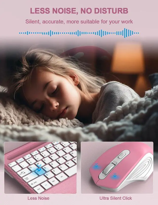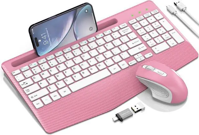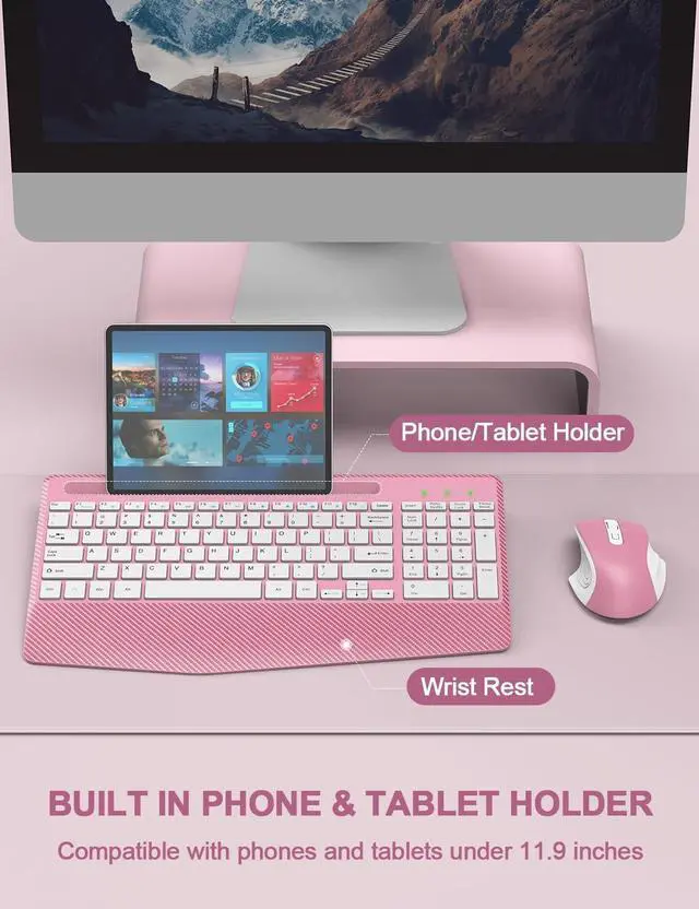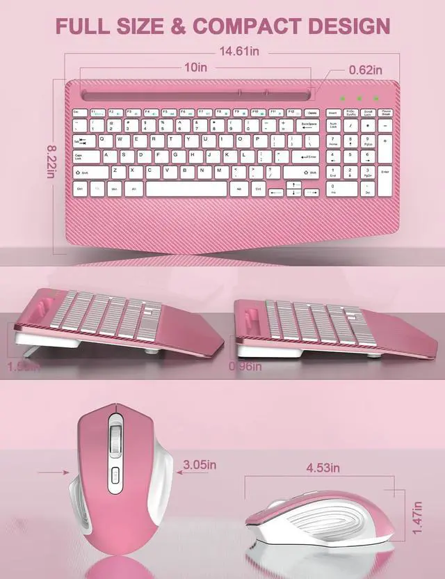 BUILT FOR COMFORT: The wireless keyboard with large wrist rest and ergonomic typing angle design provides support for your wrists and reduce twisting. Help your wrist in a comfortable position, and reduce wrist pain and fatigue after long hours of work