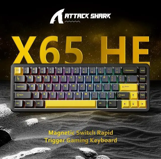 65% Magnetic Switch 8KHZ Keyboard and 1KHZ MouseSpeed Is Everything!This ATTACK SHARK X65 HE wired mechanical keyboard delivers hyper fast speed on every single key with adjustable actuation,while the R1 tri mode ultra lightweight mouse only weighs 59g which can provide smooth movement with high sensitivity and precise control, both keyboard and mouse can be programmable to fit your preference,perfect for strategy games, shooting games and online role-playing games