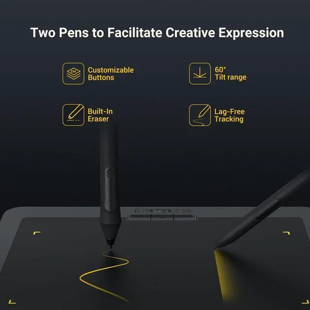 Two Advanced Digital Pens with Pen Case and AccessoriesDraw thicker or thinner lines depending on how hard you push the pen to the tablet. Digital pens features two different diameters and numbers of buttons, 8192 levels of pressure sensitivity, 5080LPI pen resolution and virtually no lag, providing you ultimate precision and control to make lines smoother and more natural, allowing you to capture ideas faster and easier.