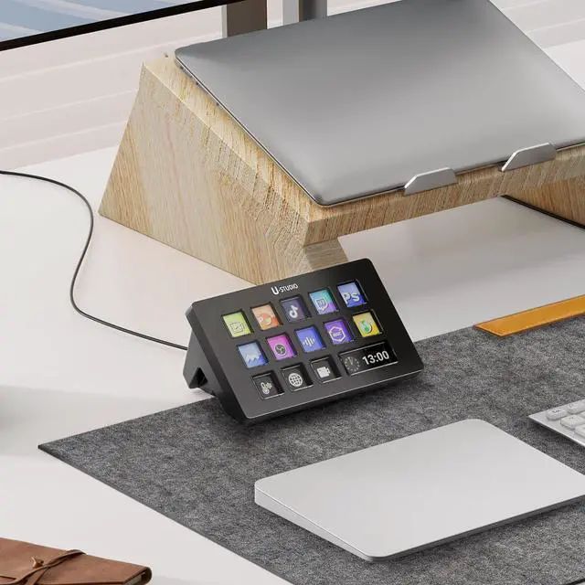Ulanzi Deck D200 gives you 1 big LCD key CPU+GPU/time displays + 13 fully customizable LCD keys to control your apps and tools. instantly trigger unlimited actions with a tap