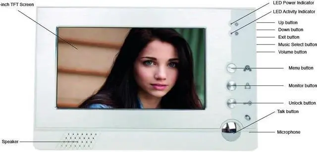 7" Color TFT LCD display with adjustable brightness, contrast, and volume