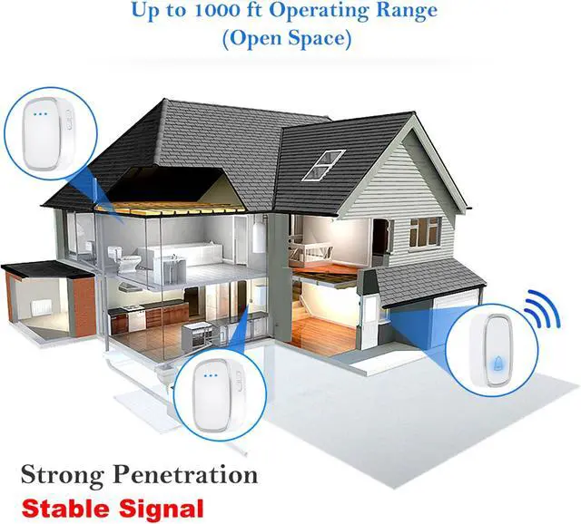 With 1 plug in receivers and 1 push button transmitter, AUTENS wireless doorbell is perfect for homes, apartments, classroom or business. No more pairing or syncing, no batteries are required for the receivers, simply plug into power supply, set your ringer and volume and you are good to go.
