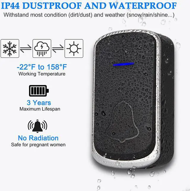 This wireless doorbell is perfect for homes or apartments. No batteries are required for the receivers, simply plug into power supply, set your ringer and volume and you are good to go. The push button is rated IP44 waterproof and acceptable for outdoor use. The wireless and portable design allows you to install the doorbell in any section of your retail store, business, home and classroom. AUTENS also offers expandable doorbells which also work well for large homes or villas.