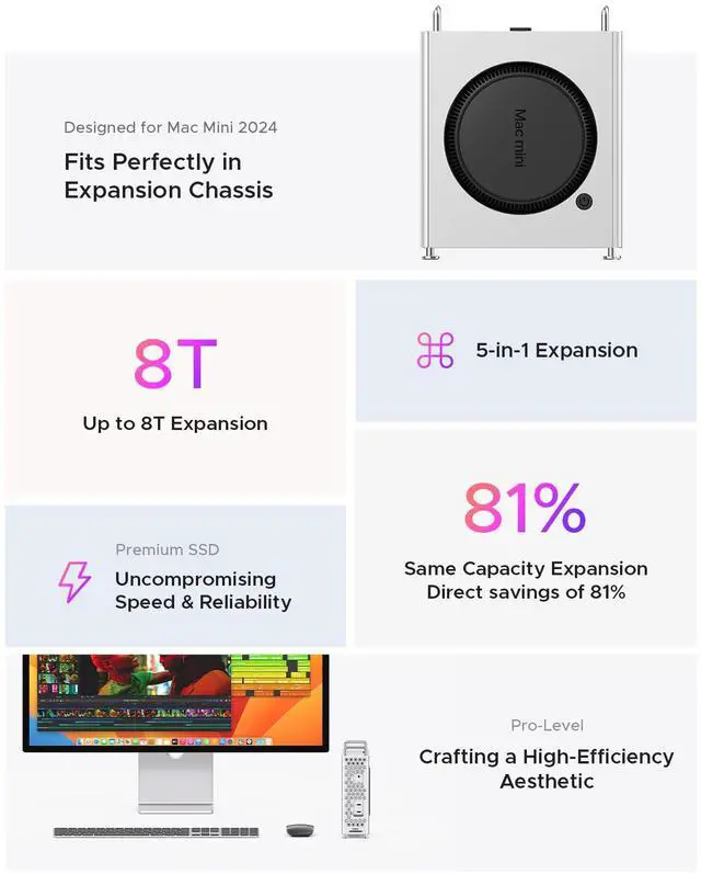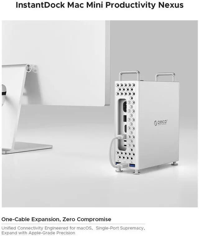 4. Vertical Hollow Cooling StandThe vertical design promotes air circulation, effectively reducing heat for stable operation. Rear openings align with the Mac mini's air vents, ensuring optimal cooling performance and smooth operation.