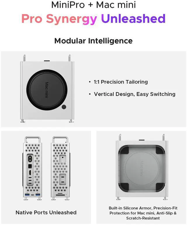 1. Precise CustomizationExclusively designed for the Mac mini M4/M4 Pro, this case features a 1:1 full-body fit with precise alignment for the power button, allowing easy access without lifting the device. The case offers perfect cutouts for all ports, ensuring smooth connections for external devices, while providing snug protection for your Mac mini.