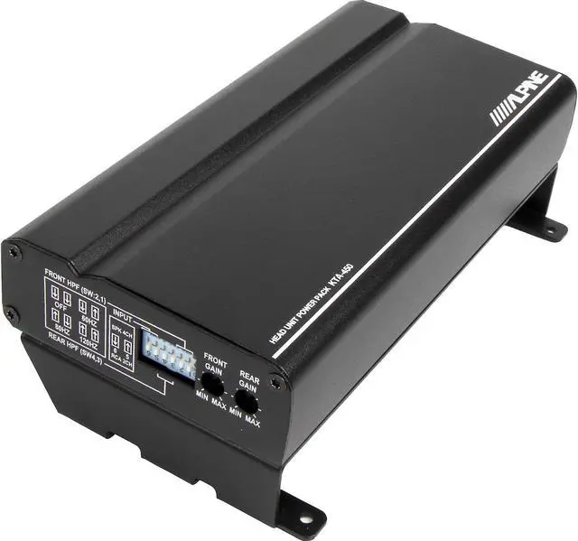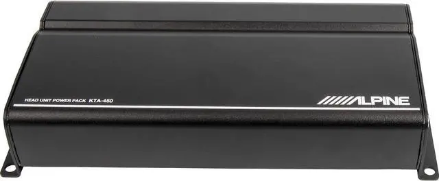 Alpine KTA-450 Power Pack Compact 4-Channel Car Amplifier will make a significant improvement in your system. This compact 4-channel amplifier puts out 50 watts RMS per channel from a tiny chassis that’ll fit almost anywhere in your vehicle. KTA-450 uses Alpine’s Dynamic Peak Power (DPP) technology to deliver a quick energy boost when needed, virtually doubling the amplifier’s output power on musical peaks. Award-Winning Power Stack Compatibility The KTA-450 can mount behind select Alpine 2-DIN mech-less head units, like the iLX-W650, using the included bracket. The recessed harness receptacle allows the wiring to fold between it and the head unit so both products fit in a standard 2-DIN space.
