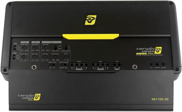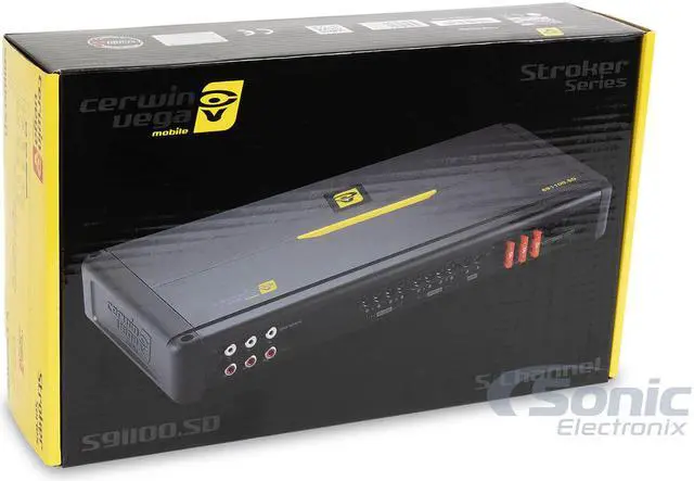 The Cerwin Vega S 91100.5D 5 Channel Amplifier is the perfect addition for anyone that is looking for stable power in a compact design. The S 91100.5D features the latest high efficiency full-range digital topology which allows this amp to work great with a wide range of car audio setups. Cerwin Vega also designed this amp to be compact and put all the connections on one side so it is easy to install and easy to access once it is in your vehicle. Let Cerwin Vega amplifiers be the driving force of your car audio system and feel the power!