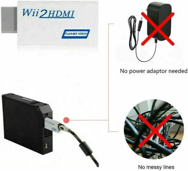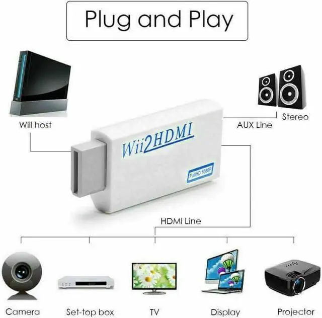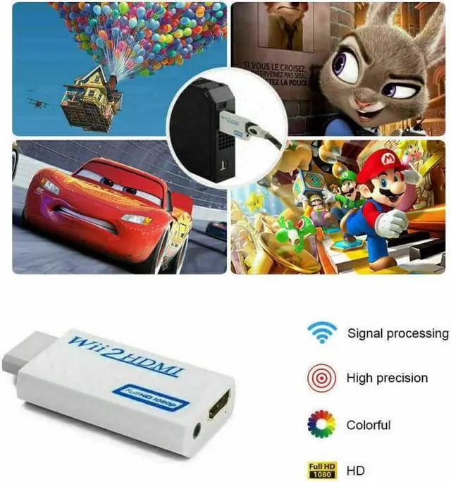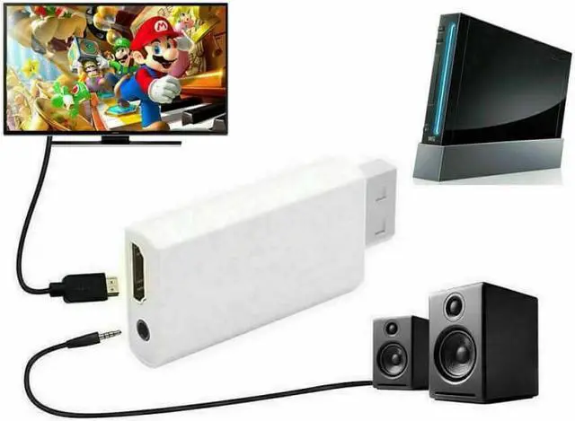 Wii to HDMI converter for the Wii console, outputs video and audio in full digital HDMI format and supports all Wii display modes. Plug and play for true-to-life video/audio effects on your HDTV/monitor.