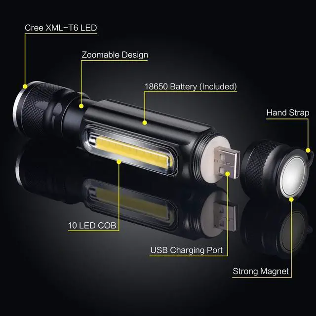 During the use of the flashlight, if you find that the brightness of the flashlight becomes obviously dim, you should stop using the flashlight and charge it to prevent over-discharge since the lithium battery can not be over-discharged.