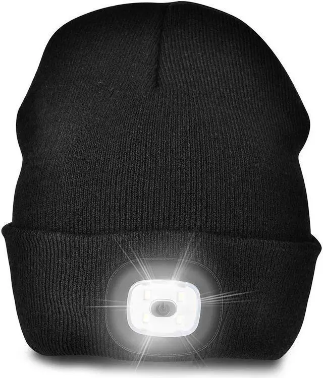 - This one-size-fits-all beanie hat will keep anyone’s head protected from the cold, while its convenient LED light illuminates your way.