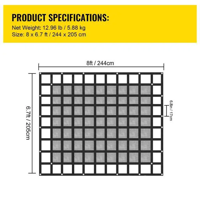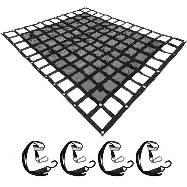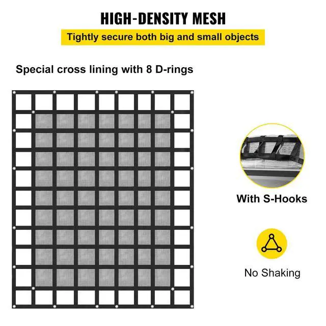 Cargo Net with Mesh, 8\' x 6.7\' Cargo Net for Pickup Truck Bed, Heavy Duty Cargo Nets with Cam Buckles & S-Hooks & Cross Strap, Truck Bed Cargo Net for Trailer SUV Jeeps(96\" x 80\")