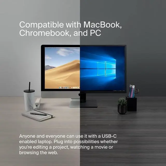 BROAD COMPATIBILITY: Take this sleek USB-C hub anywhere and connect to Type C devices such as iPad, MacBook, Chromebook, and PC laptop. Plus, a longer 8.6-inch cable lays flat on your desk without dangling.