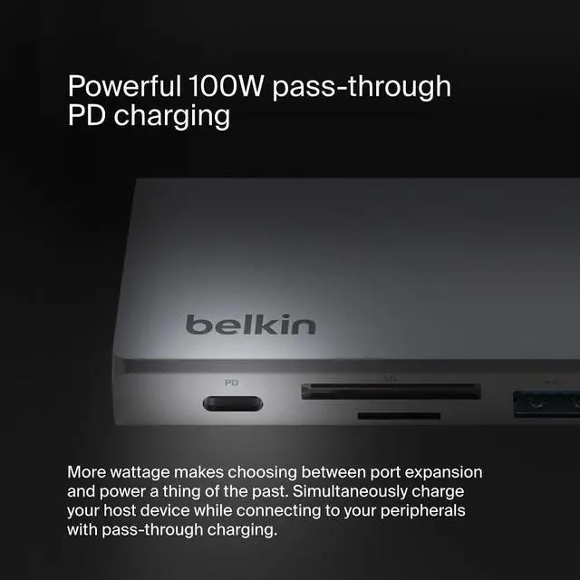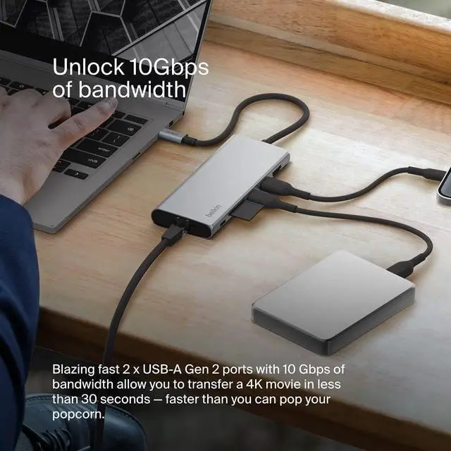 7-IN-1 USB-C HUB: This multifunctional Belkin hub accounts for all your connection needs, built for fast and convenient connectivity with 7 ports including 2x USB-A, 4K HDMI, and USB-C 100W ports so you can get the most out of your laptop's USB-C port.