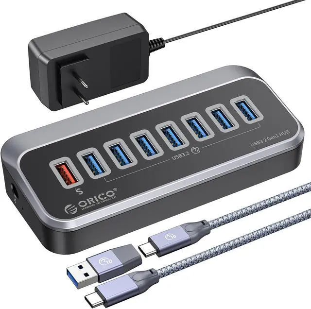 Port USB 3.2 1M: USB 3.2 5Gbps * 7, With 5V3A Power Port, USB A to Type c 1m 90 degree Cable