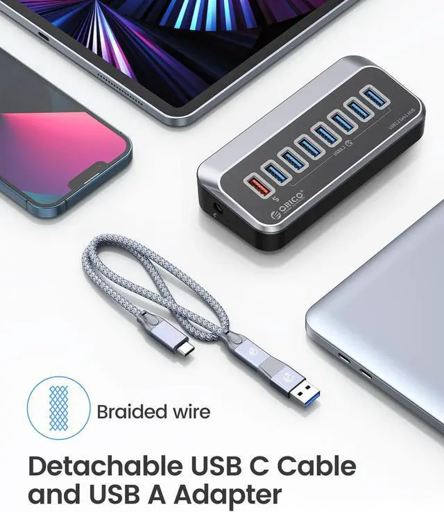Port USB 3.2 0.5M: USB 3.2 5Gbps * 7, With 5V3A Power Port, Type c to Type c 0.5 m Cable and USB A Adapter