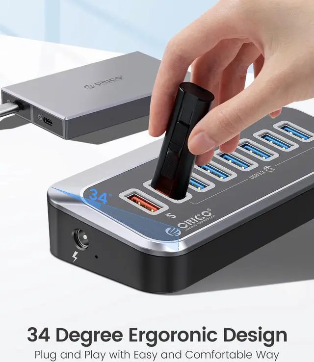 Ergonomics angle design, you can easily hold it, which will easily conform to the shape of any size computer or PC, comfortable and supportive than those HUBs. Saving more effort when you plug and unplug your USB devices and placing more stability on your desk, which is more secure. Plug and play, no need to install any driver or software.