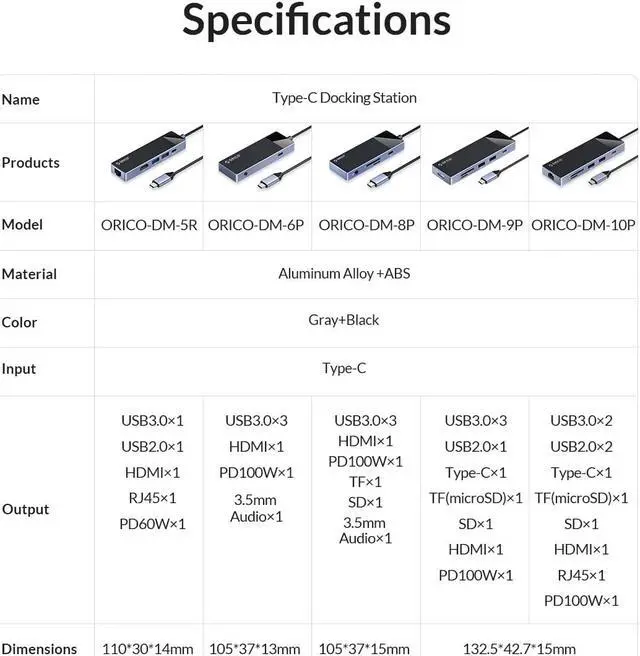 Output interface: PD×1, HDMI×1, VGA×1, USB-A 3.0 ×1, USB-A 2.0 ×2, 3.5 mm Audio×1