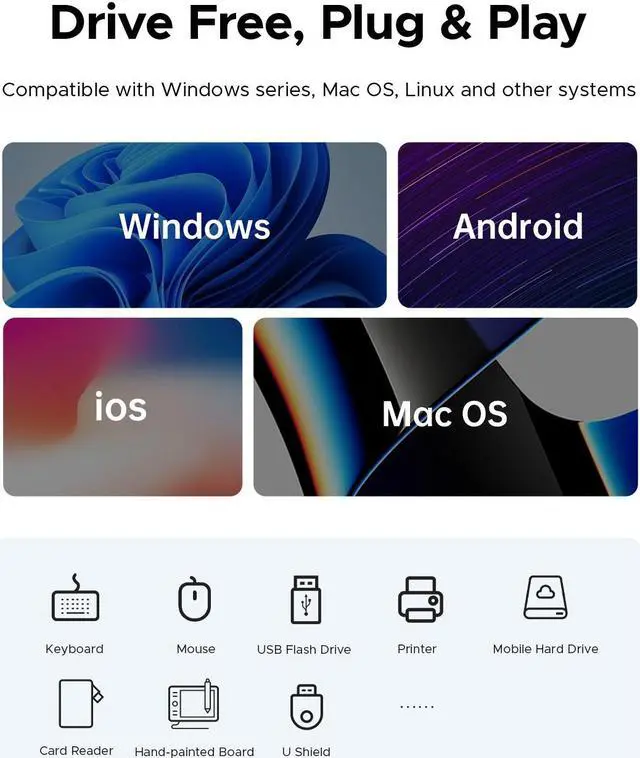 This hub has multiple USB interfaces and can connect multiple devices simultaneously, such as keyboards, mice, printers, and external hard drives, to meet your diverse office needs. Compact in structure and easy to carry, this hub is your perfect assistant whether you are working in the office or outdoors.