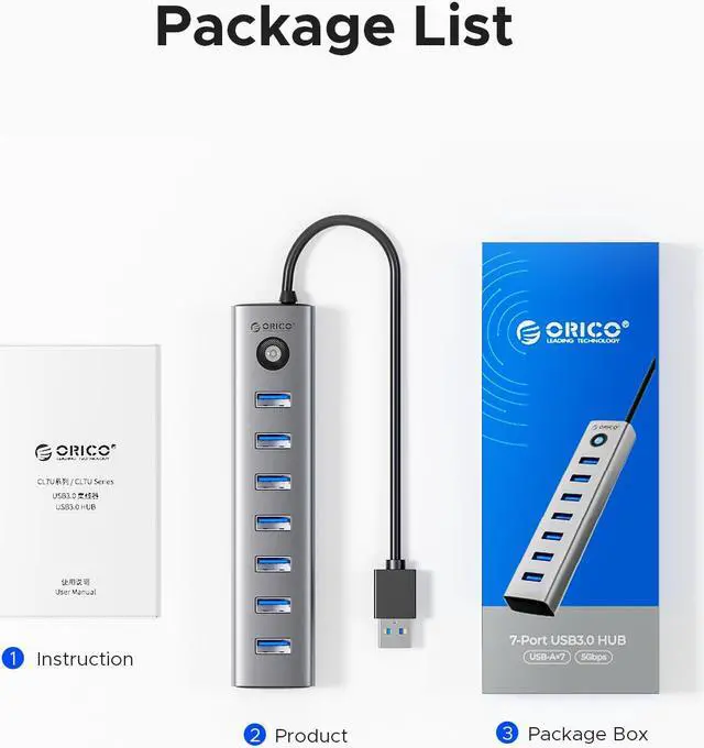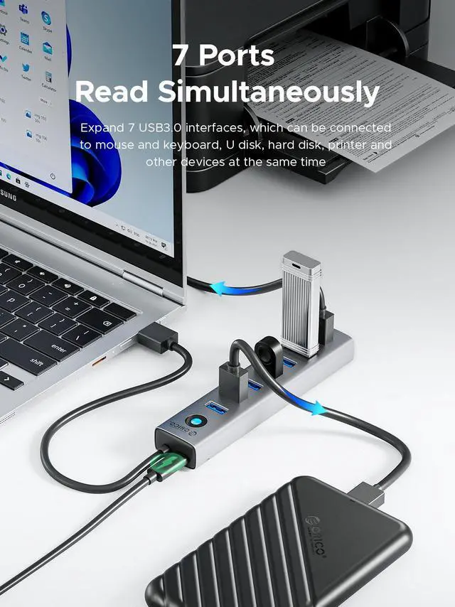 Choose ORICO aluminum alloy 7-port USB 3.0 hub to take your office efficiency and mobile office experience to the next level.