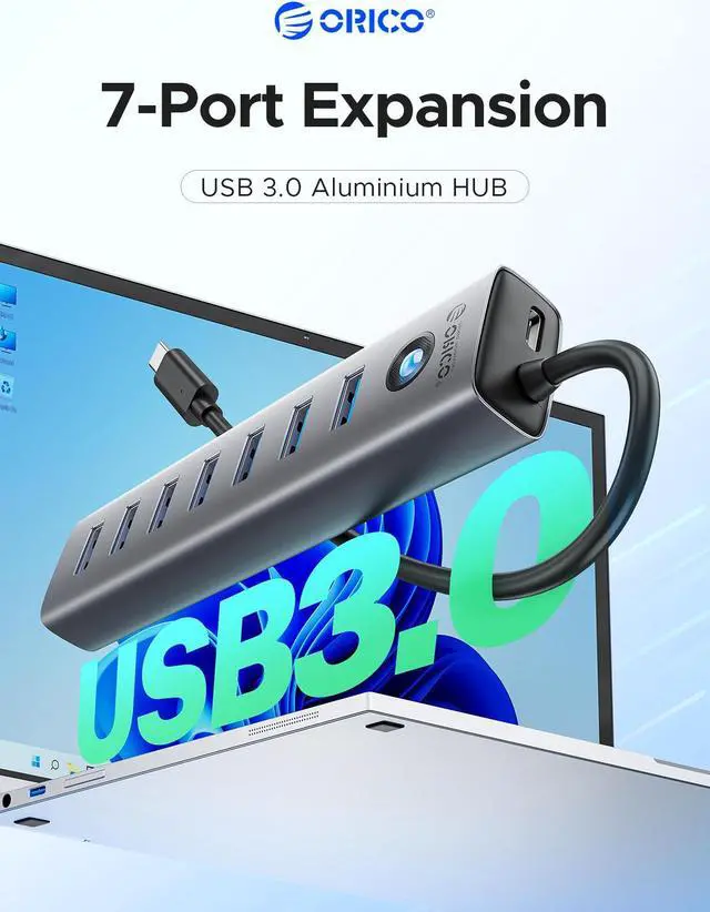 Choose ORICO aluminum alloy 7-port USB 3.0 hub to take your office efficiency and mobile office experience to the next level.