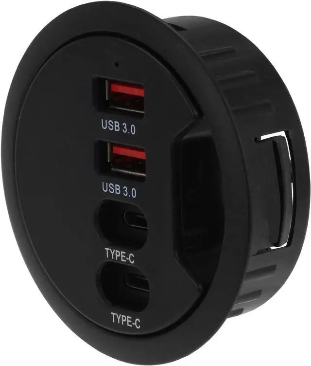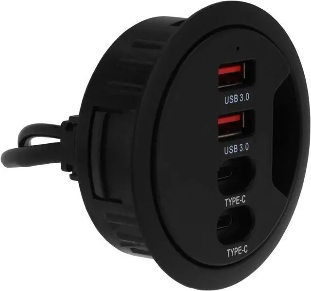 Fits in a 60 cm grommet hole on your desk USB 3.2 Gen 1 ( 5 Gbps ) transfer speed 2 Type A ports and 2 Type C ports Type C ports support 5V3A fast charging Can charge Tablet and Smart Phones