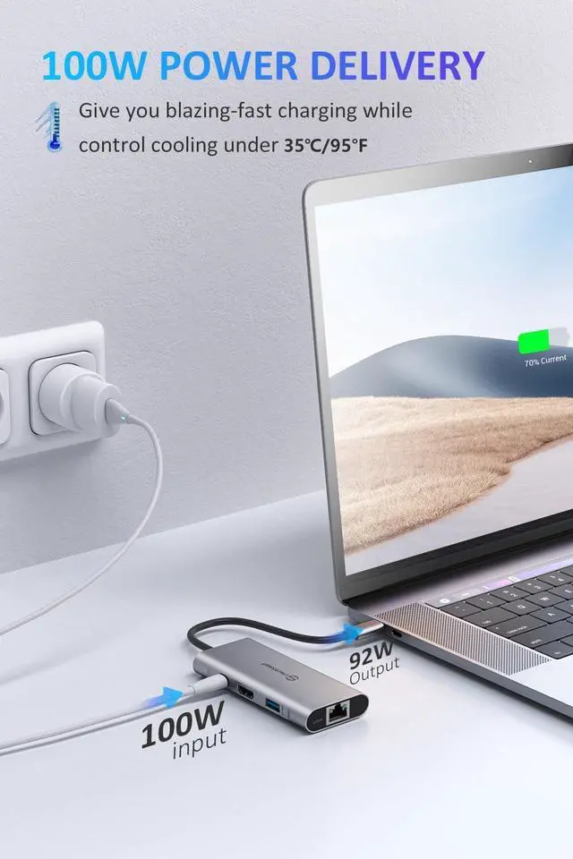 [Cost-Effective] UtechSmart USB C Hub has a 1000M Ethernet port, a 4K HDMI port, 3 USB 3.0 up to 5 Gbps and a USB C charging port with 100W power delivery to make a perfect all-in-one solution for your connectivity needs.