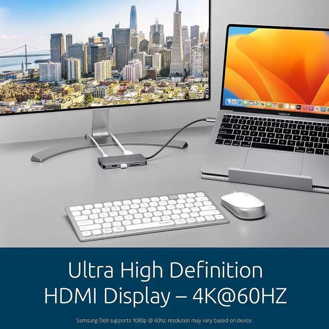 USB C Hub 4k 60Hz - Extend visual productivity with the crisp resolution, contrast, and color depth of Ultra HD (Single 4K @ 60Hz) via the HDMI video port