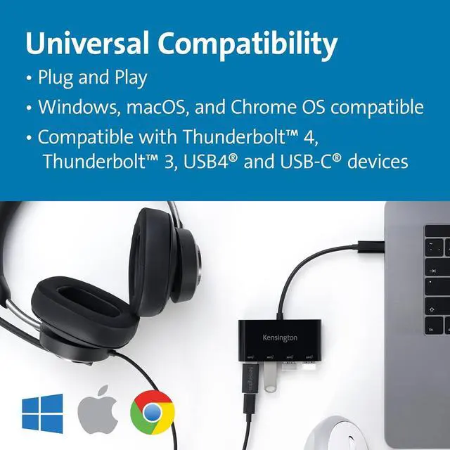 An ideal plug and play solution for USB-C based devices (Thunderbolt 4,Thunderbolt 3, USB4 , and USB-CAlt Mode) running Windows 10 orabove, macOS 11 or above andChrome OS 91 or above