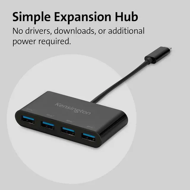 A simple plug-and-play expansion hubfor connecting up to four USB-A devicesto a single USB-C port on yourcomputer or docking stationnodrivers, downloads, or additional powerrequired