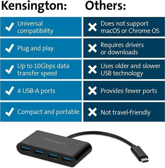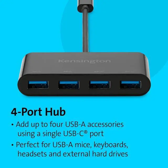 Kensington CH1200 USB-C 10Gbps 4-Port Hub, USB Type C to USB Adapter with 4 USB 3.0, Compatible with Thunderbolt 4, Thunderbolt 3, USB4 and USB-C Devices (K33616WW)
