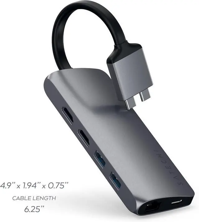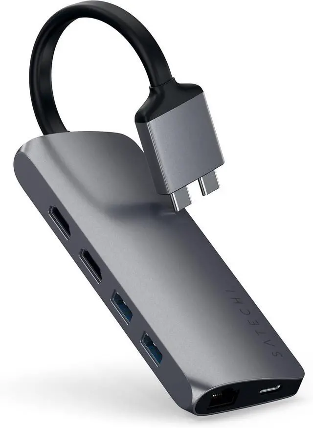 Satechi Type-C Dual Multimedia Adapter with Dual 4K HDMI, USB-C PD, Gigabit Ethernet, Micro/SD Card Readers, USB 3.0 - for M2/ M1 MacBook Pro/Max (Space Gray)