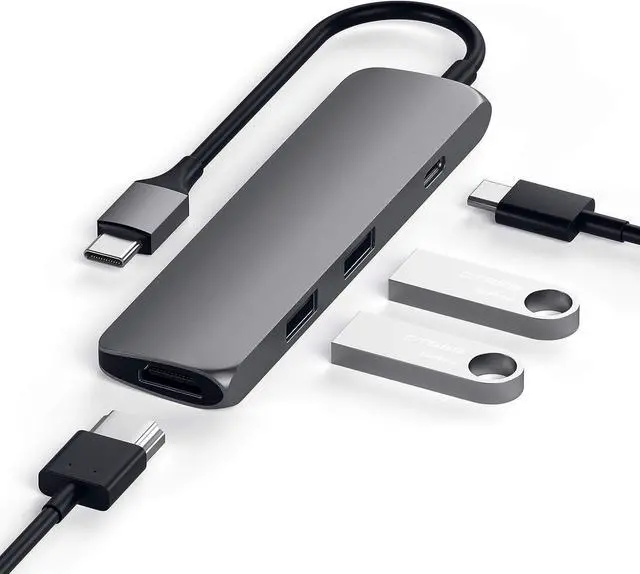 Satechi 4 in 1 USB C Hub Multiport Adapter (Space Gray, Slim Classic)