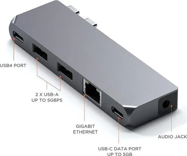 All the Peripherals in One The Pro Hub Mini Adapter offers all the ports you need including two USB-A 3.0 data ports, USB-C data up to 5 Gbps, Gigabit Ethernet, and a 3.5mm Audio jack. Note: USB-A does not support charging or CD drives