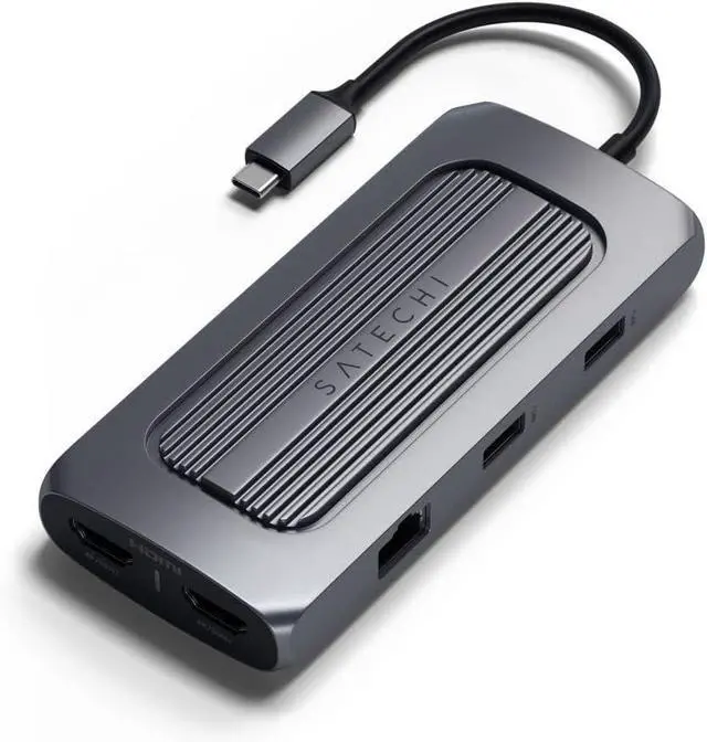 Satechi USB-C Multiport MX Adapter - Dual 4K HDMI, 100W PD Charging, Gigabit Ethernet, Data - for M2/M1 MacBook Pro/Air, iPad Pro/Air, Mac Mini, iMac