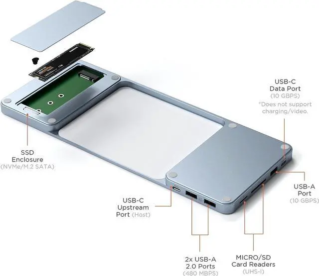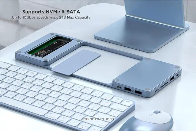 Satechi USB C Slim Dock for 24 iMac with Tool-Free Enclosure for M.2 PCIe NVMe and SATA SSDs USB C Data Port, USB A, 2 USB 2.0, Micro/SD Card Reader (Blue)