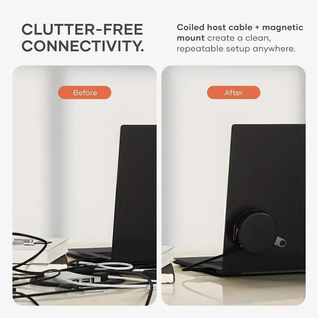 - & - - Keep your desk organized at home, in the office, or on the go. The coiled USB-C cable and magnetic mount prevent tangles and save space, while the compact 2.6 body (2.4 oz) easily fits into your bag or pocket for effortless portability.