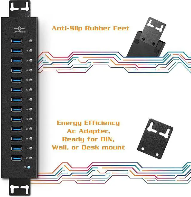 Clear HUB power LED Indicator Backward Compatible with all legacy USB 2.0 and 1.1 devices; Anti-Slip Rubber Feet; comes with wall/desk mount kit
