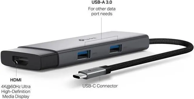 5-in-1 USB-C hub: UH5020C transforms a single USB-C port into 5 ports with a 4K 60Hz HDMI, 100W power delivery, 1 USB-C data port, 2 USB-A data ports