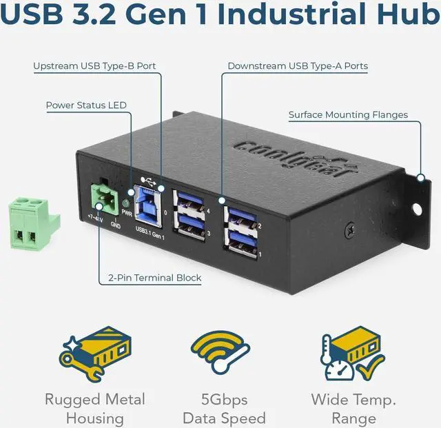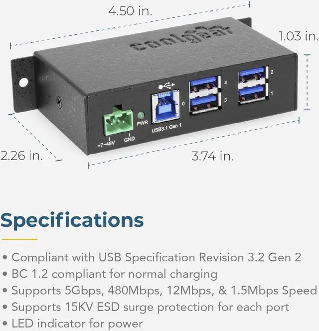 SUPER FAST SPEEDS This 4 port USB hub is 3.1 compliant guaranteeing super-fast speeds data transfer speeds of 5Gbps. Backward compatible Super-Speed, 480Mbps High-Speed, and 12Mbps Full-Speed, and 1.5Mbps Low-Speed