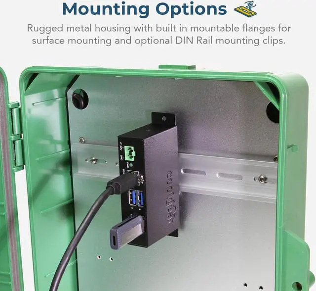 MOUNTING OPTIONS With an industrial rugged metal chassis and built-in DIN rail mountable brackets. This device allows for flexible and secure installations options.