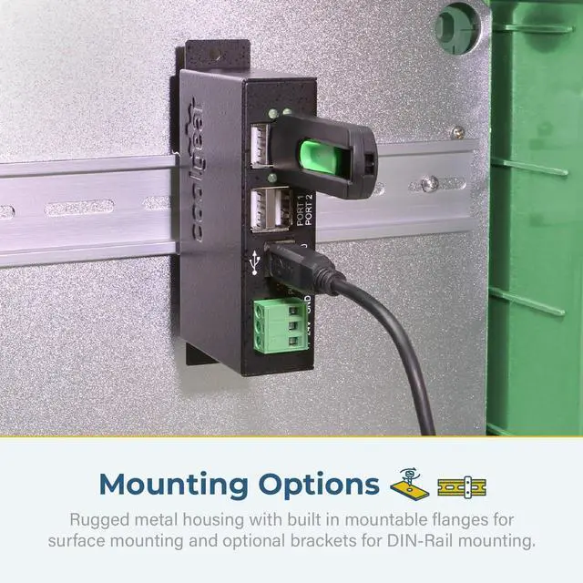 Superior Build Quality: Housed in a rugged steel chassis with built in mountable flanges, the 4-port hub is perfect for installations in offices, labs, warehouses, heavy machinery, automation equipment, and other industrial applications.
